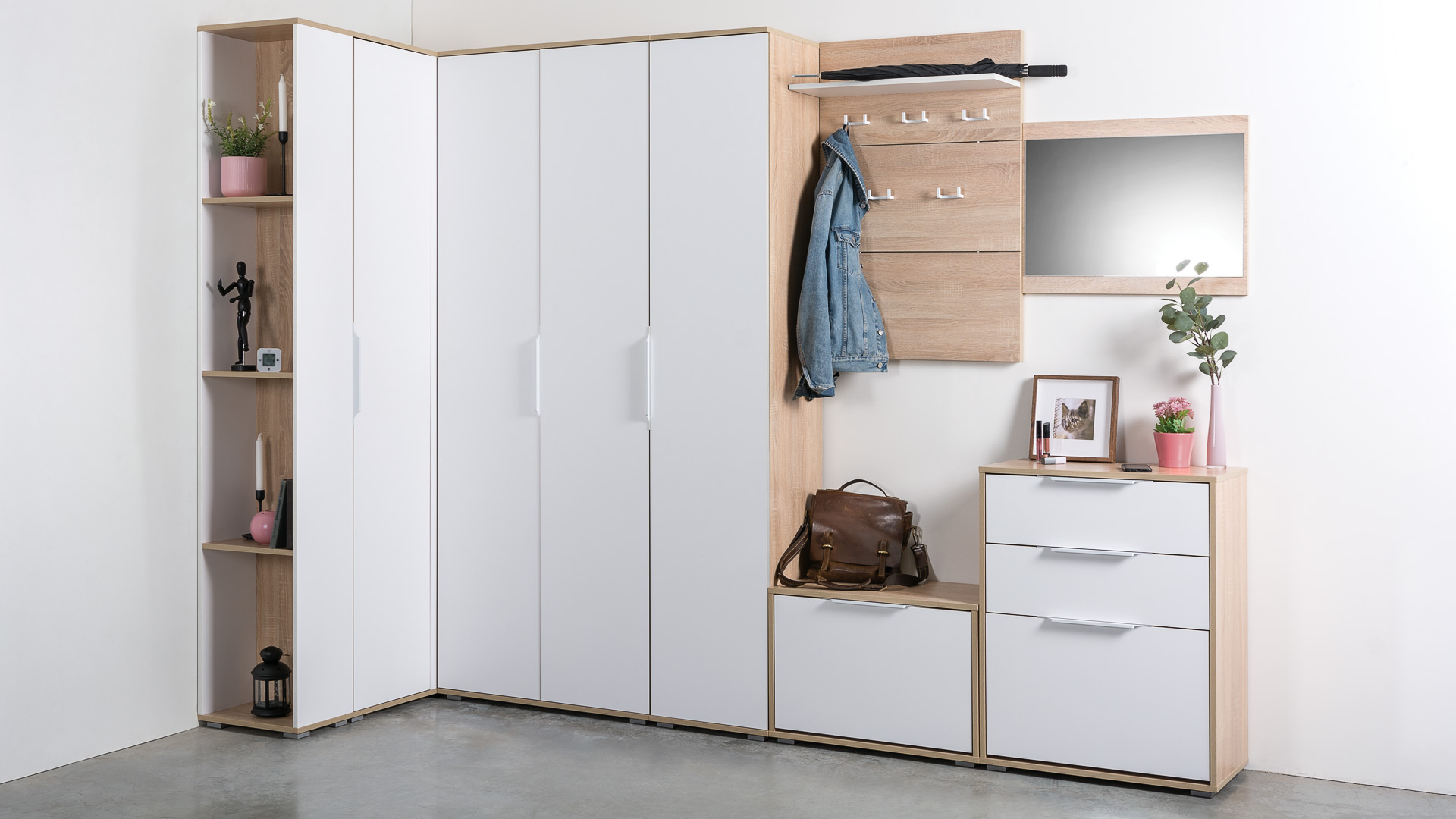 Лаконичная дизайнерская фурнитура идеально дополняет внешний вид прихожей Куба.