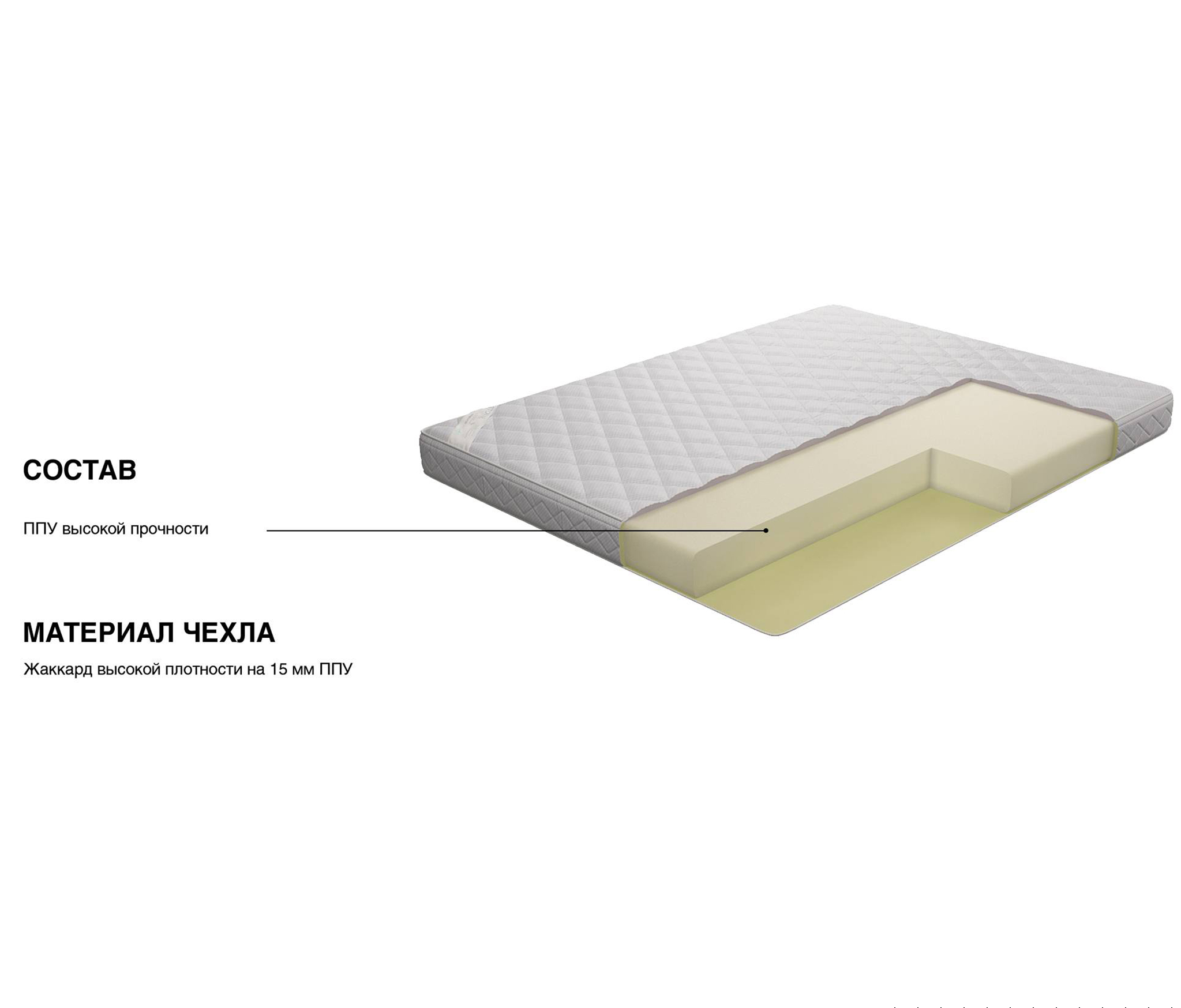 Классический вариант беспружинного матраса, в основе которого монолитный блок высокоэластичной пены. Данный материал будет поддерживать оптимальную для комфортного сна температуру поверхности. При этом он очень легок, что делает его отличным вариантом для использовании на вторых этажах детский кроватей. Обращаем ваше внимание, что матрас и наматрасник отвечают за правильное положение позвоночника во время сна, но за шейный отдел позвоночника отвечает подушка, а не матрас, поэтому крайне важно не только правильно подобрать матрас, но и подушку, чтобы сон стал максимально комфортным и полезным. Рекомендовано использование вместе с защитным чехлом Aquastop. Поставляется скрученным в рулон, что существенно упрощает его транспортировку, ведь в таком виде, матрас войдет почти в любую легковую машину. |