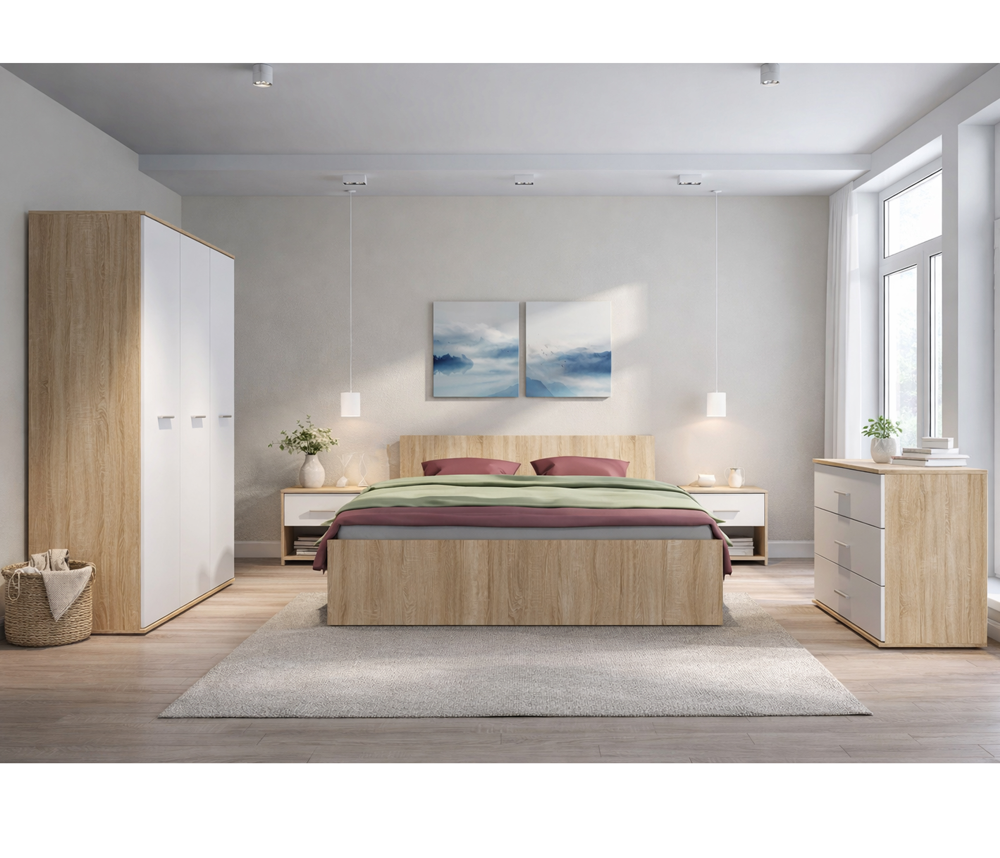 Мамбо Спальня Комплект 3 Дуб Сонома/Белый Код 00000279302