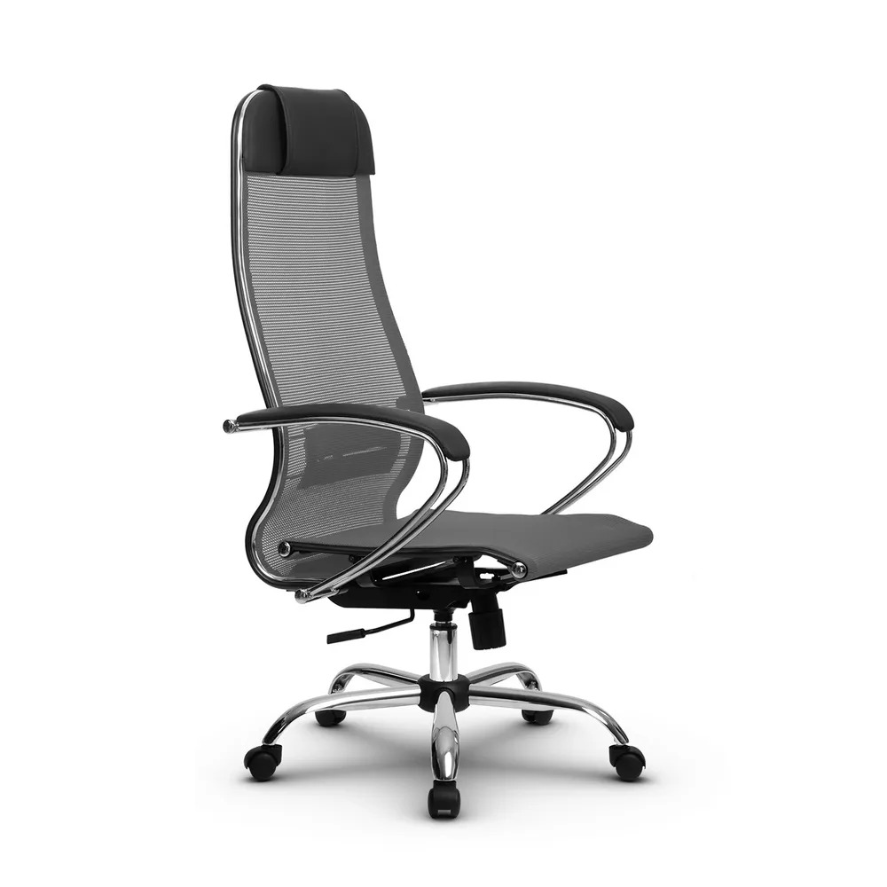 Спинка: высокая, с мягким подголовником, черное полимерное покрытие каркаса с хромированным молдингом, ширина 475 мм. Регулируемый поясничный подпор: стальной хромированный с ремнем из экокожи MPRU. обивка спинки: сетка натяжная без прошивки (сетка Х2). Спинка комплектуется дополнительной подушкой, позволяющей увеличить объем подголовника. Подлокотники: стальные классические хромированные, с мягкими накладками. Сиденье: на стальном каркасе с черным полимерным покрытием, ширина 475 мм. обивка сиденья: сетка натяжная без прошивки (сетка Х2). МАТЕРИАЛЫ ОБИВКИ : Экокожа MPRU на подголовнике, на подлокотниках. Механизм качания: топган. Газлифт: стальной, хромированный. Пятилучье: стальное , хромированное с овальным сечением лучей, D - 700 мм. Ролики: полиамидные, d - 50 мм"